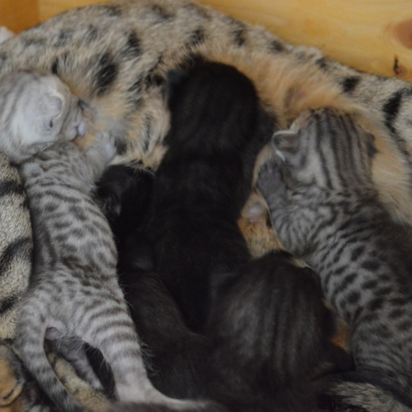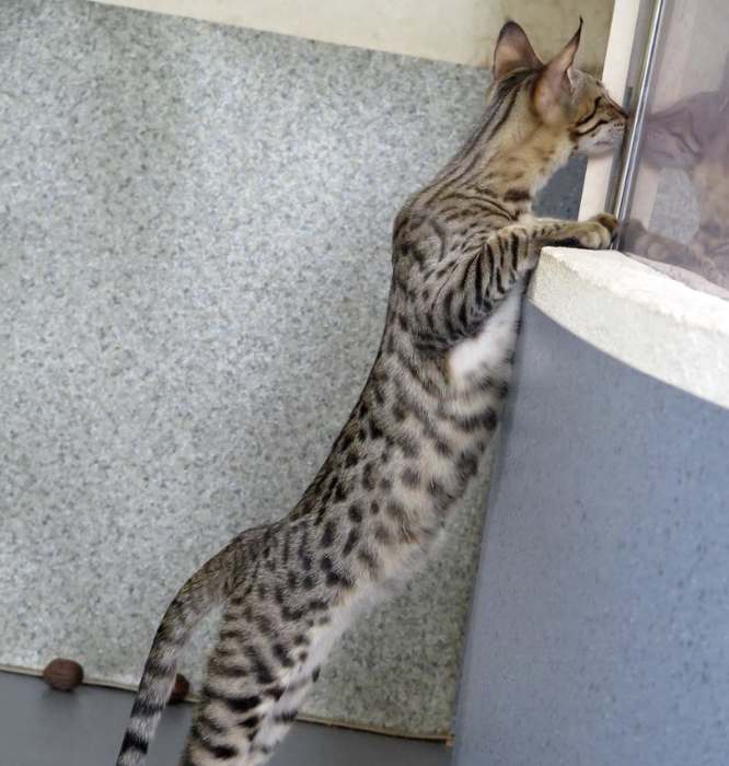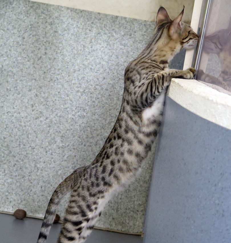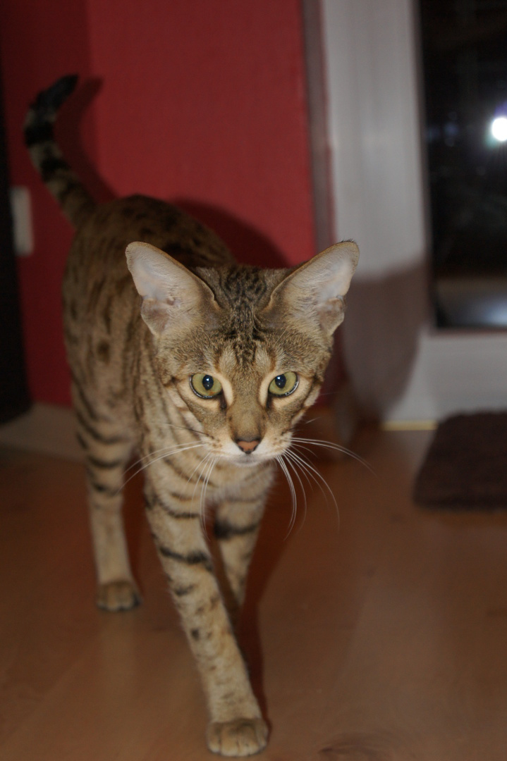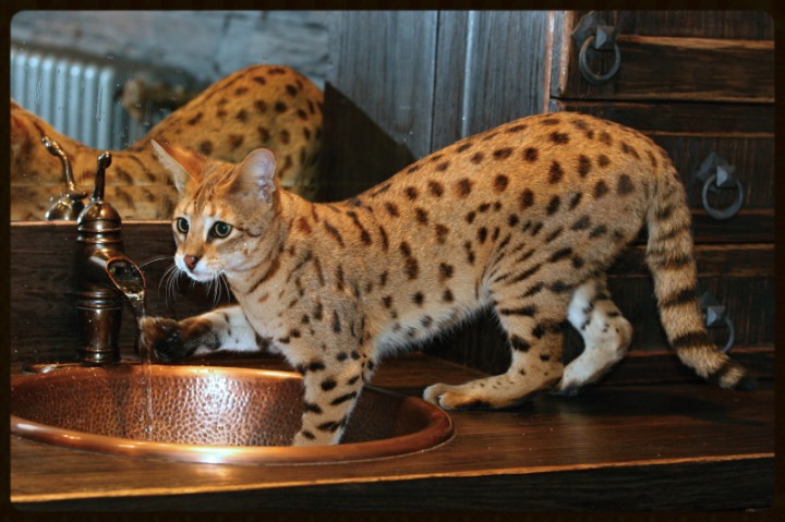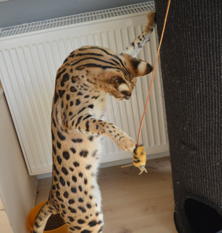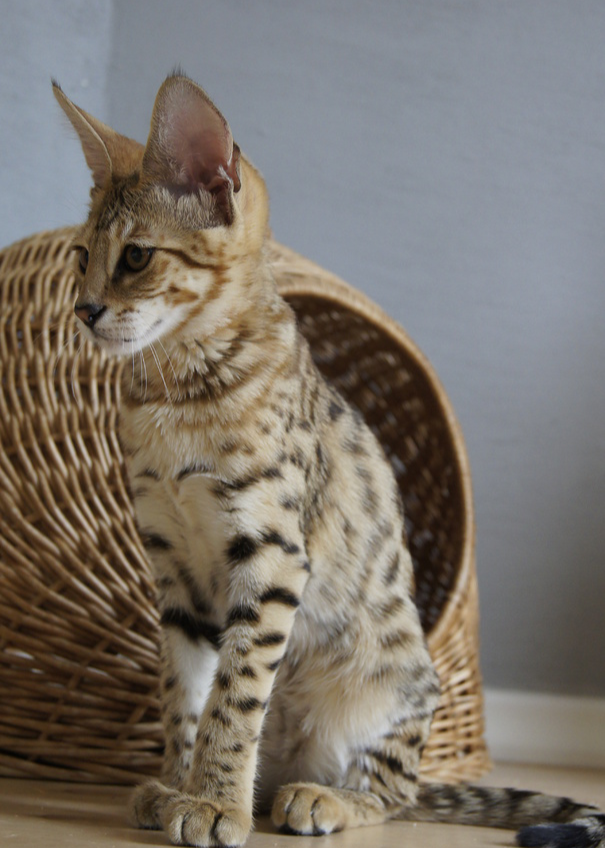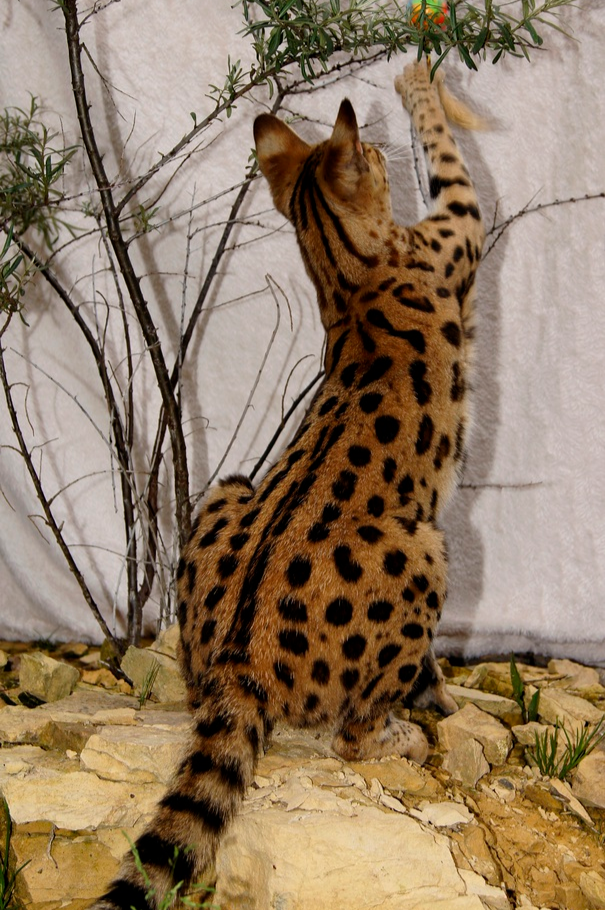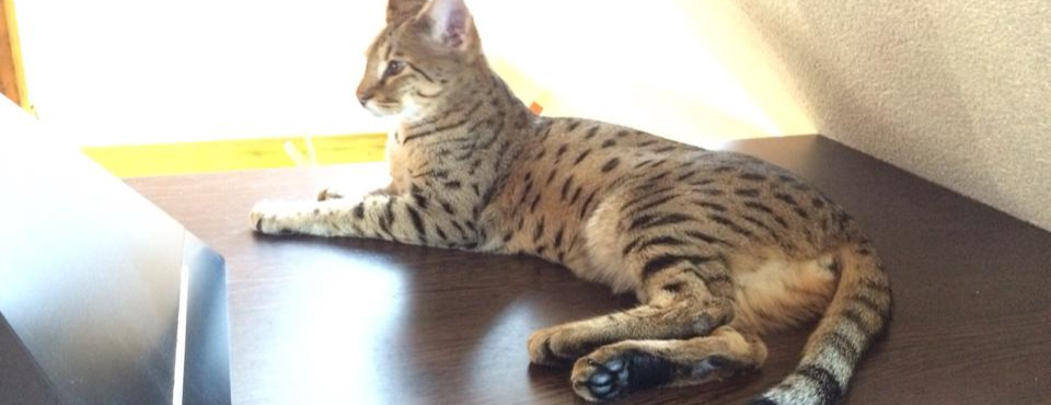Der 13-18 kg schwere Serval bevorzugt Lebensräume in Wäldern in der Nähe von Flüssen und die Savannen in Zentralafrika. Seine Population ist im Abnehmen begriffen, vorallem in Nordafrika, wo er als gefährdet angesehen wird. Leider hat er sich auch dem Leben in der Nähe menschlicher Siedlungen angepasst, wo er gern Geflügelfarmen und Gehöfte überfällt. Teils aus diesem Grund, hauptsächlich jedoch wegen seines attraktiven Fells wird er ausgiebig bejagt. Die Anpassung an den Menschen macht ihn einerseits domestizierbar, was wir sehr schätzen und dadurch erst unsere Savannahkatzen hervorgebracht werden konnten, anderereseits kostet es ihm sein Leben.