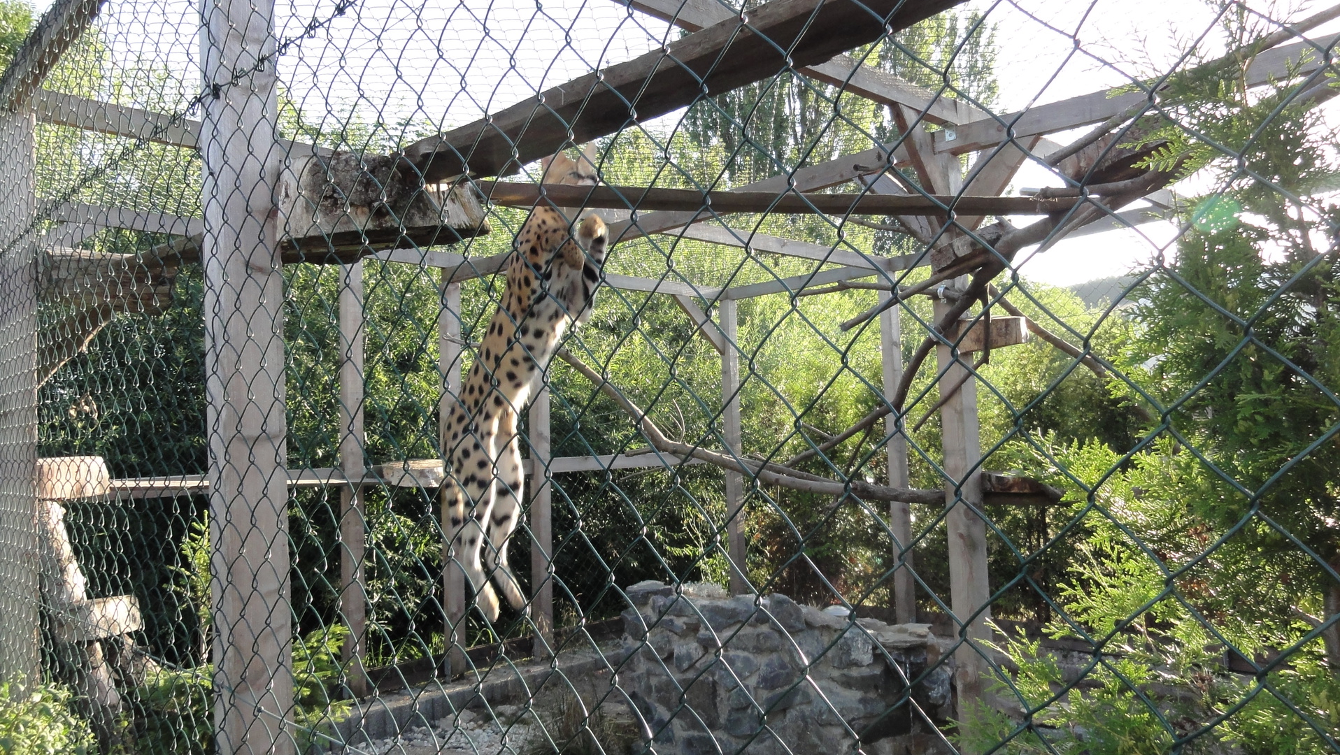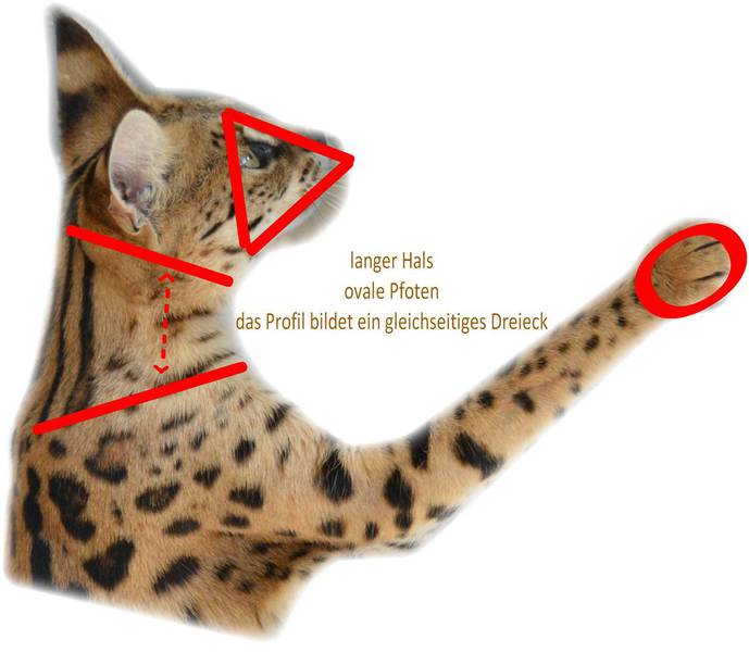 Dieses grazile, elegante Tier, mit schlankem, schnellem Körper, langen Beinen, kurzem Schwanz und großen nach vorne gerichteten Ohren, hat eine Besonderheit, die einzigartig unter den Katzen ist - seine Vorderbeine sind länger als die hinteren. Das macht ihm die charakteristischen hohen Sprünge beim Rennen möglich. Er ist ein hervorragender Athlet und kann bis zu drei Meter hoch in Bäume springen, auf kurzen Distanzen ist er sehr schnell. Er kann klettern und schwimmen. Sein Hauptfeind ist neben dem Menschen der Leopard, dem er jedoch für gewöhnlich schnell entkommen kann, wenn er nicht gerade überrascht wird.